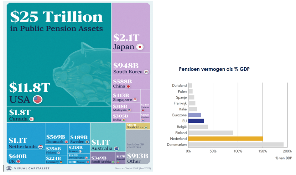 - The recent formation of a new cabinet in The Hague is being followed with interest in Europe. For countries such as France, Spain, and to a certain extent Germany, joint decision-making is attractive because it offers the possibility of indirectly drawing on the relatively strong pension and capital positions of countries such as the Netherlands and Finland through solidarity mechanisms (see figure below).