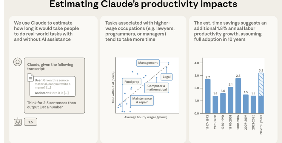 AI is having an increasingly direct and measurable impact on productivity and profitability. A recent, comprehensive study by Anthropic, a leading AI company, offers valuable insight into which sectors are benefiting, where productivity gains are occurring, and how investors can view this.