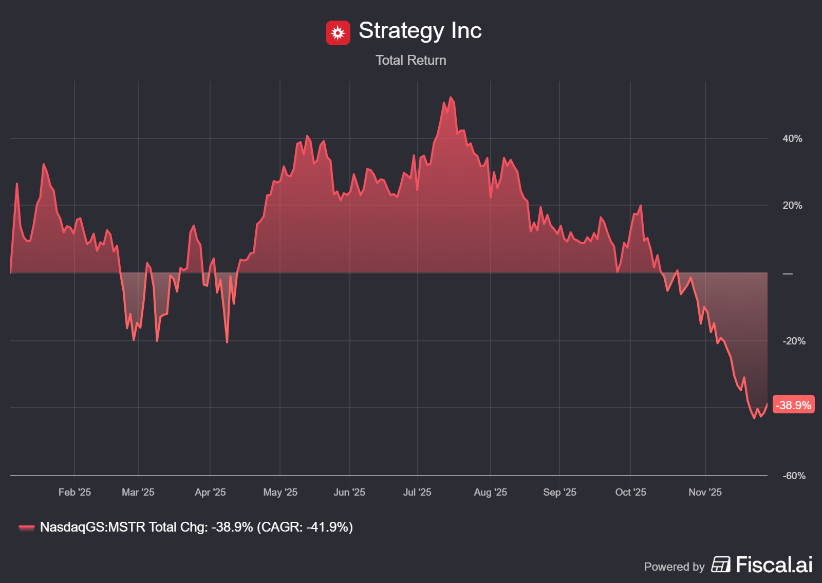 MicroStrategy shares have fallen about 41% this year and are at risk of losing their place in certain stock indexes due to recent price movements. Such an index removal could lead to mandatory selling by ETFs and index funds, which would again put additional pressure on the stock price. A lower share price also reduces MicroStrategy's ability to raise new capital through equity issuances, making the company even more dependent on Bitcoin-related collateral.