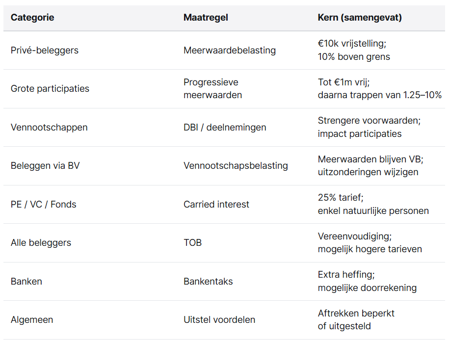 This week, Prime Minister Bart De Wever presented a new agreement to reduce the budget deficit in 2026 and 2027. The package consists of a combination of tax increases and targeted savings. For example, taxes on share transactions, airline tickets and natural gas will rise, there will be an additional bank tax and various government expenditures will be more strictly curtailed.