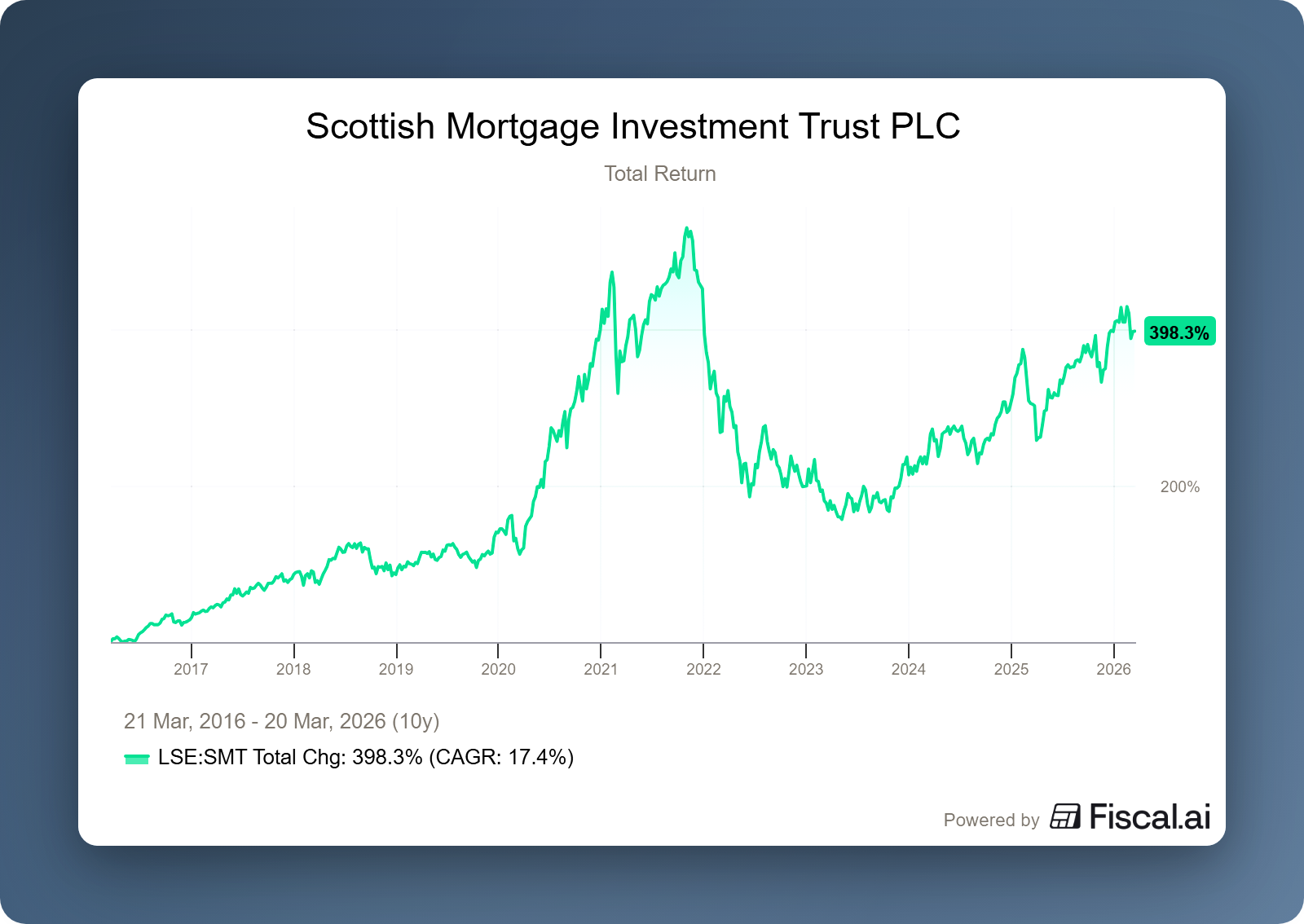 Whereas companies used to go public to raise capital for expansion, they now do so only once their business model has been fully proven and scaled. As a result, index investors only get involved once a company has reached “maturity” and miss out on the years when the greatest value creation takes place. Scottish Mortgage thus offers access to a phase of the economy that simply remains invisible to conventional index funds.