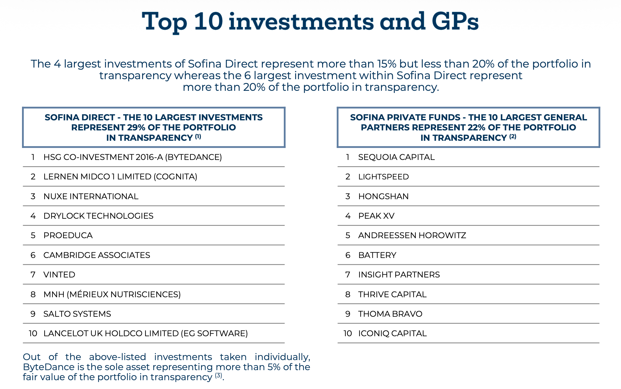 Looking at the portfolio’s actual composition, we see that Sofina’s top 10 holdings now collectively account for approximately 29% of the total value. This concentration reflects where Sofina has the strongest conviction.