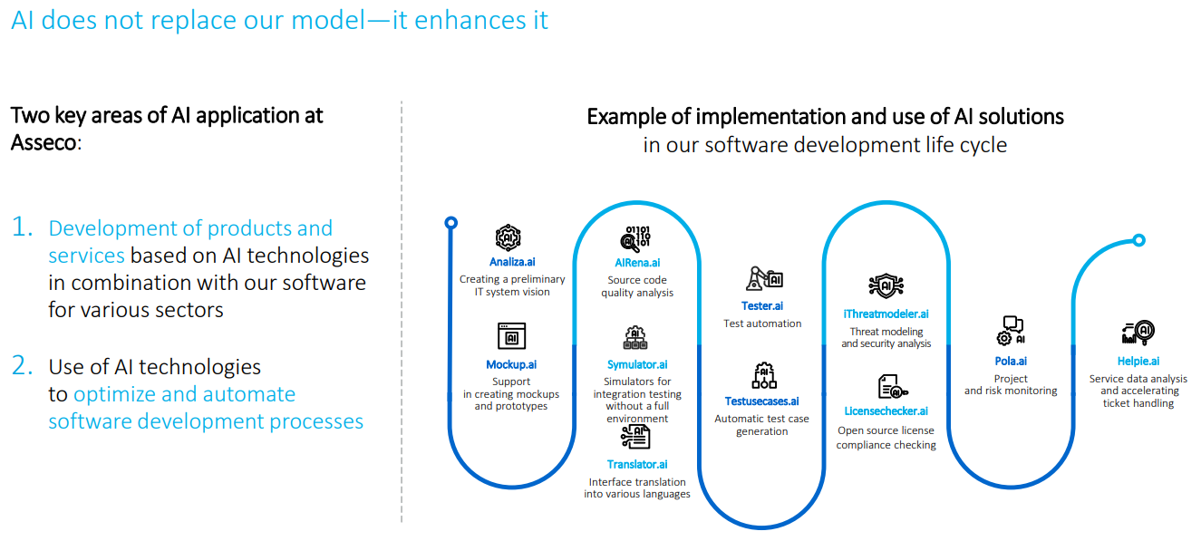 Adam Góral, founder and chairman of the board of directors at Asseco, emphasizes that the rise of artificial intelligence is having an irreversible impact on the industry. He states: "AI is undoubtedly shaping our world, and our companies must respond appropriately." In his view, however, AI is not a replacement for human specialists, but a tool to enhance service quality and improve efficiency. The group’s goal is to achieve more with the exact same team by deeply integrating AI solutions into the internal production process.