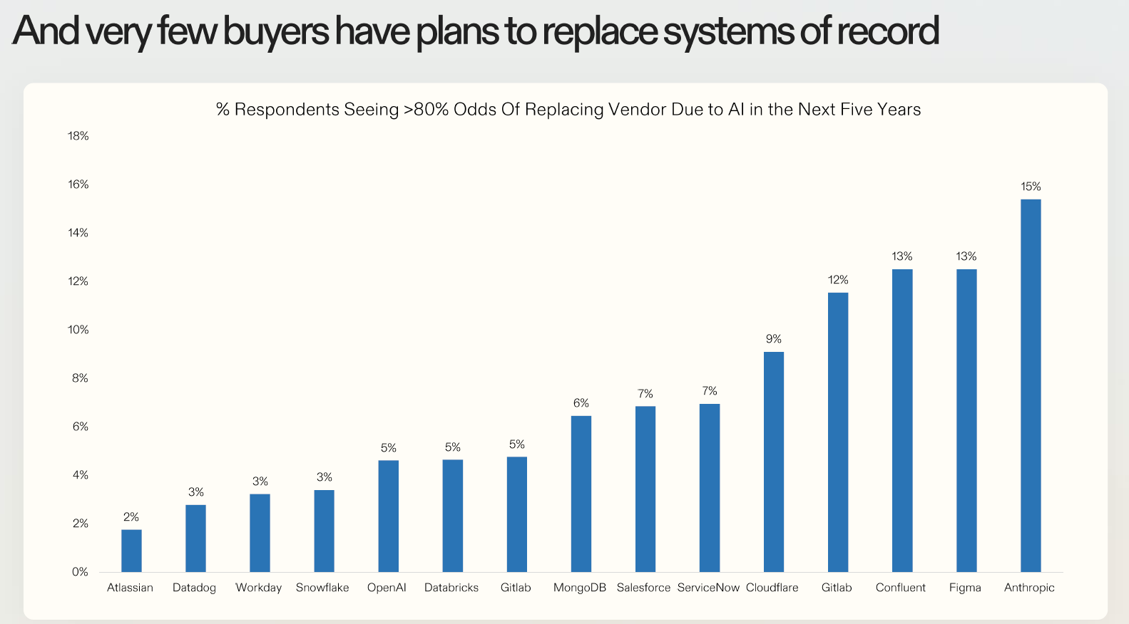 This observation about data risk fits seamlessly with the reality of this crucial infrastructure. A fundamental nuance in this debate is introduced by former Constellation Software employee Paul. He rightly argues that AI commoditizes code, but not the 'System of Record'. The Moat is not formed by the difficulty of writing code, but by complex data migrations, workflows, and integrations. Paul makes a sharp distinction between 'Systems of Action' and 'Systems of Record'. AI excels at generating content and performing tasks, which indeed poses a threat to generic tools without unique data.