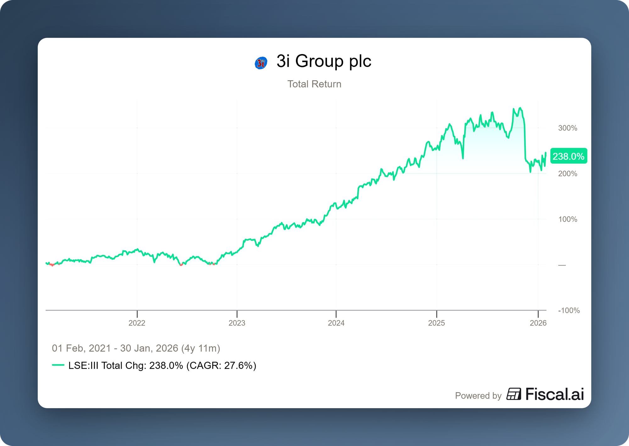 Apart from Action, the rest of the portfolio is also performing well. Royal Sanders continues to perform strongly thanks to healthy volume growth and the successful integration of previous acquisitions, which prompted 3i to invest an additional £56 million in the company this quarter. 3i Infrastructure (3iN) also contributed positively to the result; the underlying portfolio is performing well and the share price rose by 3%, bringing the value of 3i's stake to over £1 billion.